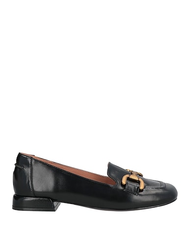 loafers, glossed-leather, plain colour with appliqués, embellished, leather lining, square toe, flat, rubber sole, contains non-textile parts of animal origin