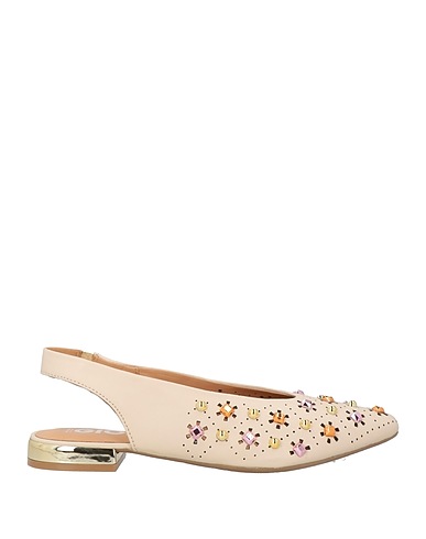 slingback ballet flats, leather, plain colour with appliqués, cutout, leather lining, elasticated inserts, pointed toe, flat, rubber cleated sole, contains non-textile parts of animal origin