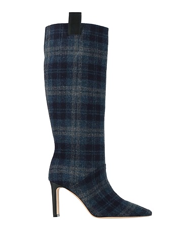 boots, flannel, tartan pattern, no appliqués, leather lining, pointed toe, geometric heel, leather sole, contains non-textile parts of animal origin, small sized