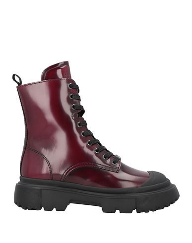 combat boots, glossed-leather, plain colour, brand logo, leather lining, zip fastening, lace-up, round toe, low heel, lug sole, contains non-textile parts of animal origin