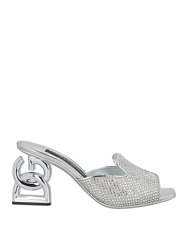slide sandals, satin, metallic, plain colour with appliqués, crystals, leather trims, leather lining, square toe, sculpted heel, leather sole, contains non-textile parts of animal origin, go extra glam with chic party accessories for your next event or night out