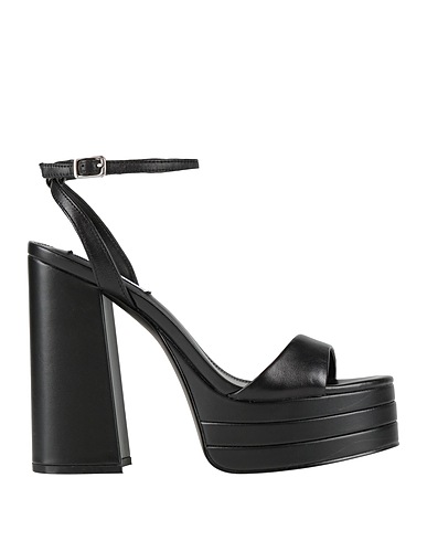 ankle strap sandals, leather, plain colour, no appliqués, fully lined, buckle-fastening ankle strap, round toe, square heel, rubber sole, contains non-textile parts of animal origin
