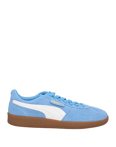 low-top trainers, puma palermo, suede, two-tone, brand logo, fabric inner, lace-up, round toe, rubber cleated sole, contains non-textile parts of animal origin