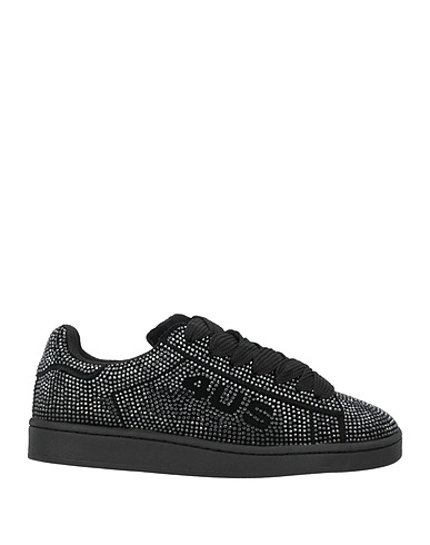 low-top trainers, brushed synthetic material, plain colour with appliqués, crystals, brand logo, fully lined, lace-up, round toe, rubber cleated sole