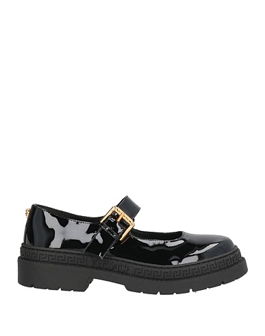 mary jane flats, patent leather, plain colour, brand logo, leather lining, buckle fastening, round toe, flat, lug sole, contains non-textile parts of animal origin