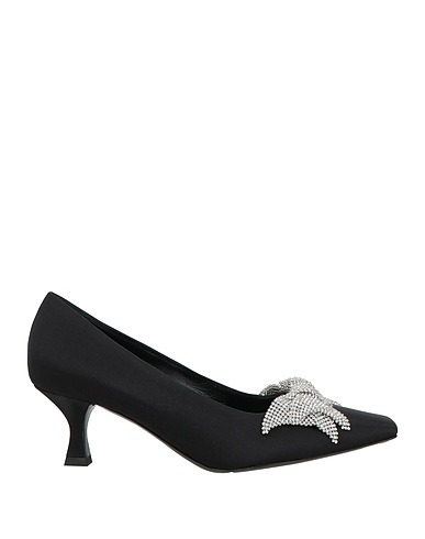 pumps, satin, plain colour with appliqués, embellished, leather lining, square toe, spool heel, covered heel, leather sole, contains non-textile parts of animal origin