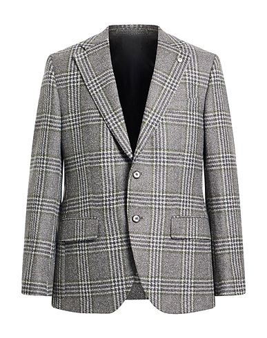 single-breasted blazer, bouclé, tartan pattern, no appliqués, lapel collar, long sleeves, buttoned cuffs, fully lined, button fastenings, one chest pocket, flap pockets, dual back vents, dry clean, do not bleach, do not tumble dry