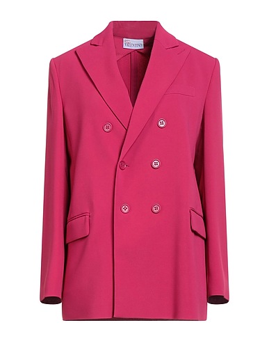 double-breasted blazer, crepe, stretchy fabric, plain colour, no appliqués, lapel collar, long sleeves, buttoned cuffs, partially lined, button fastenings, flap pockets, one chest pocket, rear slit, dry clean, do not bleach, do not tumble dry