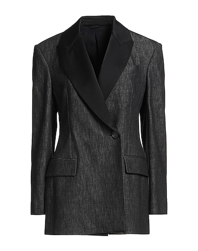 double-breasted blazer, denim, satin, plain colour, no appliqués, coloured wash, lapel collar, long sleeves, fully lined, button fastenings, one chest pocket, flap pocket, dry clean, do not bleach, do not tumble dry