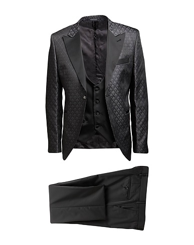 single-breasted suit, woven, paisley-print, no appliqués, lapel collar, long sleeves, fully lined, button fastenings, welt pockets, rear slit, mid rise, belt loops, 3-piece set, dry clean, do not bleach, do not tumble dry