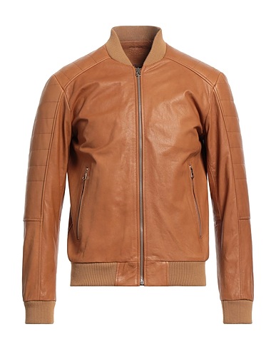 bomber jacket, leather, plain colour, no appliqués, crewneck, single-breasted , long sleeves, fully lined, zip fastening, multipockets, contains non-textile parts of animal origin