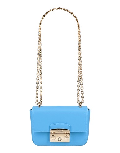 flap bag, leather, plain colour with appliqués, brand logo, metal applications, framed closure, fully lined, internal pocket, adjustable shoulder strap, metallic straps, small size, contains non-textile parts of animal origin