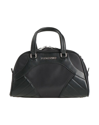 bowler bag, synthetic material, shell, plain colour, brand logo, zip fastening, fully lined, internal zip pocket, double handle, detachable shoulder strap, contrasting straps, feet at base, large size