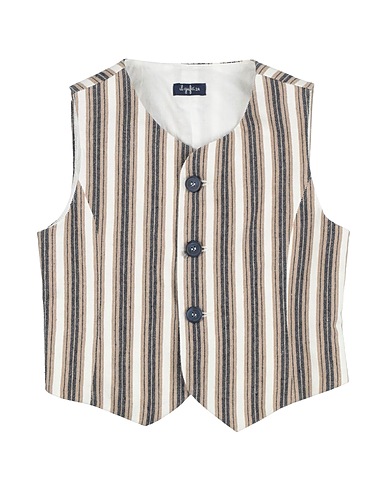 woven, jacquard, striped, no appliqués, gathered, single-breasted , sleeveless, fully lined, machine wash or dry clean, do not bleach, do not tumble dry
