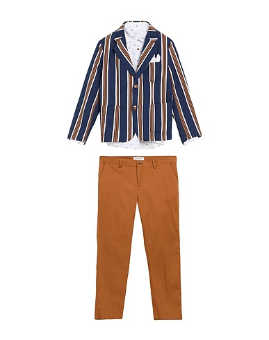 trousers set, woven, striped, detachable application, lapel collar, single-breasted , long sleeves, buttoned cuffs, unlined, button fastenings, multipockets, belt loops, 3-piece set, machine wash or dry clean, do not bleach, do not tumble dry