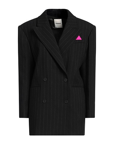 double-breasted blazer, tweed, pinstriped, no appliqués, lapel collar, long sleeves, fully lined, button fastenings, one chest pocket, multipockets, dry clean, do not bleach, do not tumble dry