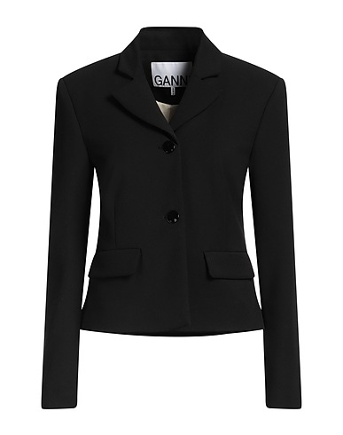 single-breasted blazer, crepe, plain colour, no appliqués, lapel collar, long sleeves, shoulder pads, fully lined, button fastenings, multipockets, dry clean, do not bleach, do not tumble dry