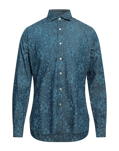 denim, floral-print, no appliqués, medium wash, classic collar, long sleeves, button fastenings