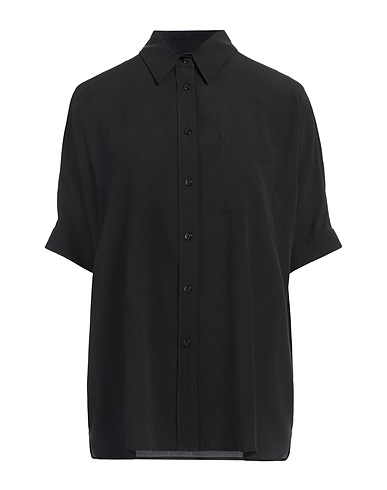 crepe, no appliqués, plain colour, classic collar, short sleeves, button fastenings, one chest pocket, stretch, hand wash or dry clean, do not bleach, do not tumble dry, long shirt