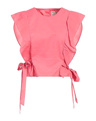 ruched top, woven, plain colour, ruffles, crewneck, short sleeves, button fastenings, tie fastening, machine wash, do not bleach, do not tumble dry
