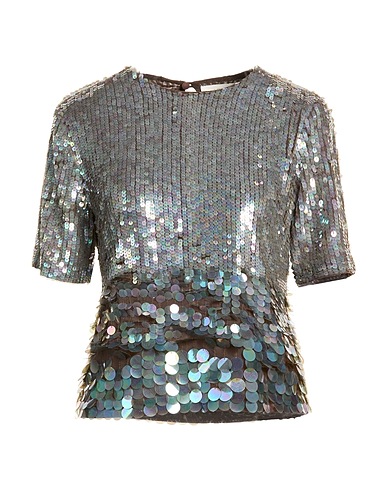 top, tulle, stretchy fabric, plain colour with appliqués, sequins, crewneck, short sleeves, button fastenings, dry clean, do not bleach, do not tumble dry, amp up the glamour with chic designer party outfits for your next event or fun night out