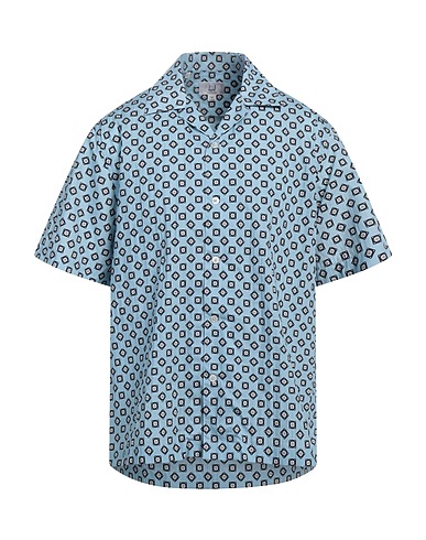 regular-fit shirt, poplin, multicolour, brand logo, camp collar, short sleeves, button fastenings, side slit hemline, dry clean, do not bleach, do not tumble dry