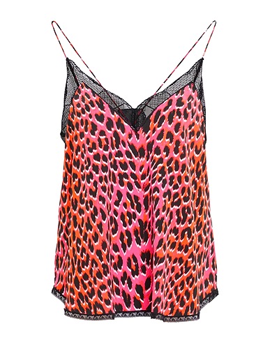 camisole, crepe, leopard-print, lace trims, deep neckline, sleeveless, hand wash or dry clean, do not bleach, do not tumble dry