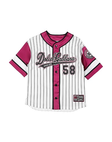 jersey, satin, striped, brand logo, embellished, crewneck, short sleeves, snap fastenings, machine wash, do not bleach, do not tumble dry, this brand runs large