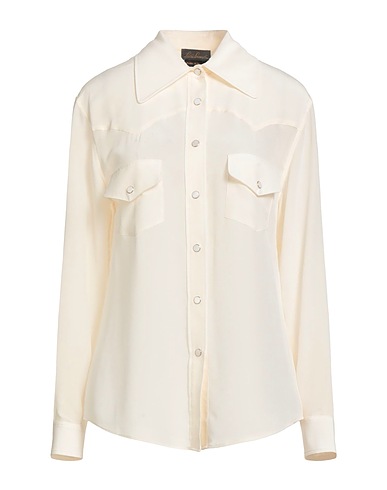 safari shirt, satin, plain colour, no appliqués, classic collar, long sleeves, snap-fastening cuffs, snap fastenings, two chest pockets, dry clean, do not bleach, do not tumble dry