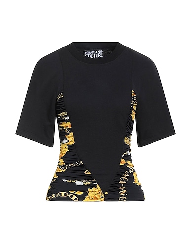 printed t-shirt, french terry, jersey, stretchy fabric, signature print, gathered, crewneck, short sleeves, partially lined, dry clean, do not bleach, do not tumble dry, this brand runs small