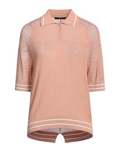 crochet-knit, lightweight knit, brand logo, two-tone, buttoned neckline, short sleeves