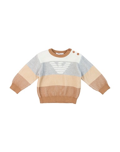 jacquard-knit, medium-weight knit, brand logo, striped, crewneck, long sleeves, button fastenings, hand wash, do not bleach, do not tumble dry