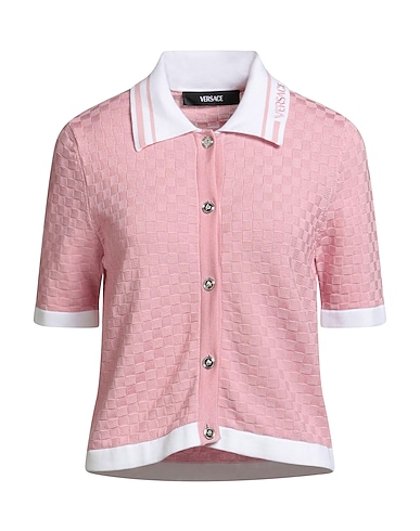 jacquard-knit, lightweight knit, embroidered logo, two-tone, short sleeves, button fastenings, hand wash or dry clean, do not bleach, do not tumble dry
