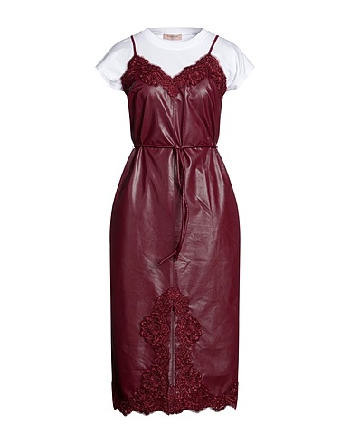 flared dress, coated fabric, lace, plain colour, brand logo, belt, deep neckline, short sleeves, unlined, zip fastening, hook fastenings, without pockets, 2-piece set