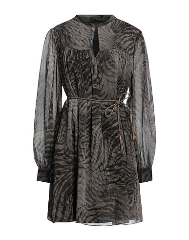 crepe, brand logo, belt, multicolour pattern, crew neck, long sleeves, partially lined interior, 1 button, no pockets, dress