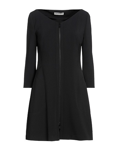 crepe, no appliqués, solid colour, v-neck, 3/4 length sleeves, fully lined, zipper closure, multipockets, stretch, trapeze style