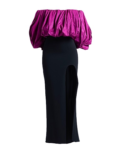 dress, crepe, satin, two-tone, no appliqués, scoop neckline, 3/4 length sleeves, fully lined, zip fastening, without pockets, stretch