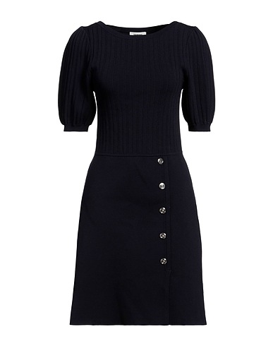 knitted, lightweight knit, metal applications, plain colour with appliqués, crewneck, short sleeves, unlined, no pockets, stretch, flared dress
