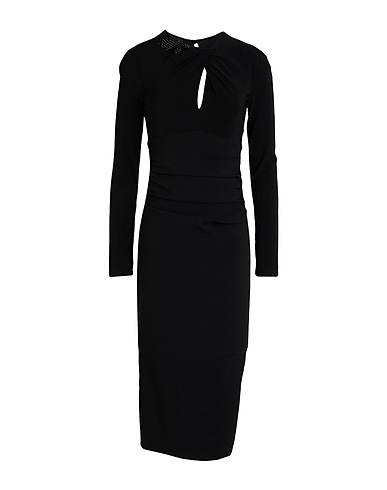 bodycon dress, crepe, plain colour with appliqués, crystals, crewneck, long sleeves, unlined, 1 button, zip fastening, without pockets, stretch, machine wash, do not tumble dry, amp up the glamour with chic designer party outfits for your next event or fun night out