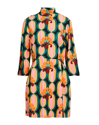 flared dress, crepe, floral-print, brand logo, turtleneck, 3/4 length sleeves, unlined, zip fastening, multipockets, dry clean, do not tumble dry