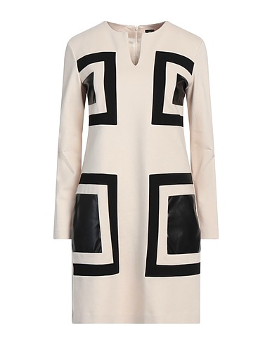flared dress, jersey, two-tone, coated fabric trims, crewneck, long sleeves, partially lined, zip fastening, stretch, dry clean, do not bleach, do not tumble dry