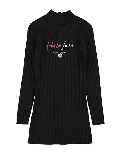 knitted, ribbed, lightweight knit, plain colour with appliqués, embroidered logo, embellished, mock neck, long sleeves, unlined, hand wash or dry clean, do not bleach, do not tumble dry