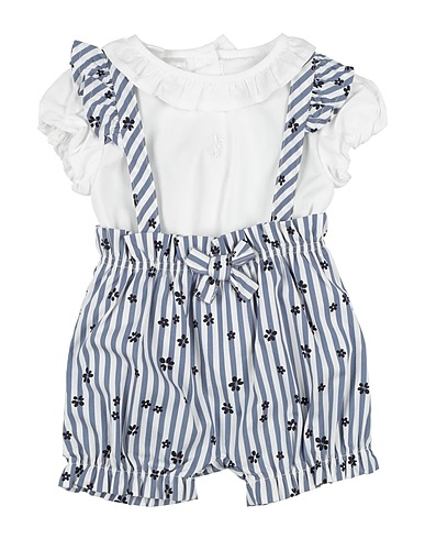 woven, polka-dot, embroidered logo, print, ruffles, crewneck, short sleeves, button fastenings, stretchy fabric, machine wash, do not bleach, do not tumble dry