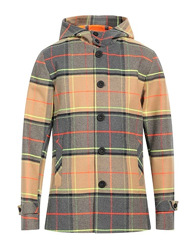flannel, no appliqués, tartan pattern, hooded, long sleeves, unlined, button fastenings, multipockets, dry clean, do not bleach, do not tumble dry, single-breasted coat