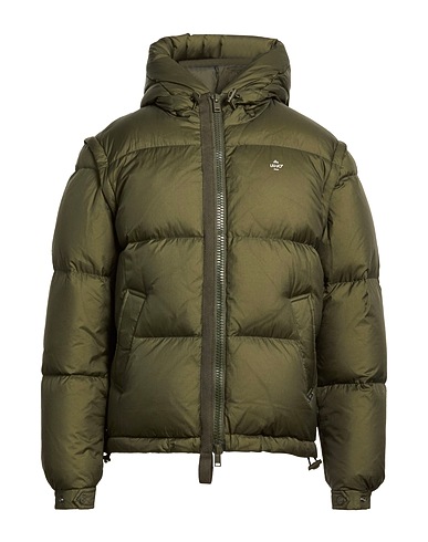 down jacket, shell, quilted, plain colour, brand logo, hooded, long sleeves, detachable sleeves, snap-fastening cuffs, duck down filling, zip fastening, multipockets, drawstring hem, contains non-textile parts of animal origin, machine wash, do not bleach, do not tumble dry, do not iron