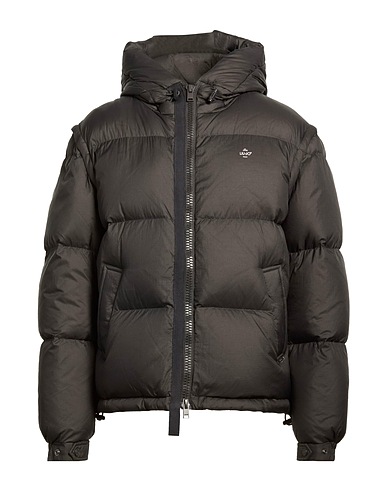 down jacket, shell, quilted, plain colour, brand logo, hooded, long sleeves, detachable sleeves, snap-fastening cuffs, duck down filling, zip fastening, multipockets, drawstring hem, contains non-textile parts of animal origin, machine wash, do not bleach, do not tumble dry, do not iron