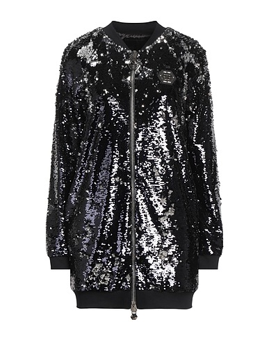 jacket, tulle, silver-tone, plain colour with appliqués, sequins, embellished, brand logo, crewneck, single-breasted , long sleeves, fully lined, zip fastening, hand wash, do not bleach, do not tumble dry, do not iron