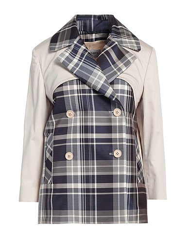 jacket, shell, no appliqués, tartan pattern, lapel collar, double-breasted, long sleeves, fully lined, multipockets, rear slit, dry clean, do not tumble dry