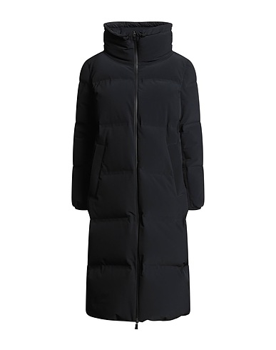 down coat, shell, stretchy fabric, brand logo, plain colour, turtleneck, long sleeves, goose down interior, heavyweight padding, zip fastening, welt pockets, contains non-textile parts of animal origin, hand wash, do not bleach, do not tumble dry