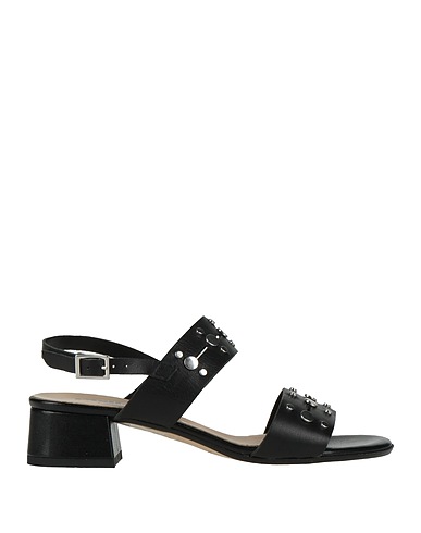 ankle strap sandals, leather, studs, plain colour with appliqués, leather lining, round toe, square heel, covered heel, rubber cleated sole, contains non-textile parts of animal origin